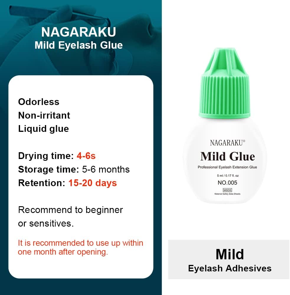 Nagaraku Mild Glue No.005 – 5 ml, profesyonel kirpik uzatma uygulamaları için geliştirilmiş, kontrollü yapışma özelliğine sahip bir kirpik yapıştırıcısıdır. Mild serisi, uygulama sırasında daha yavaş ve kontrollü çalışma isteyen kirpik uzmanları için uygundur.