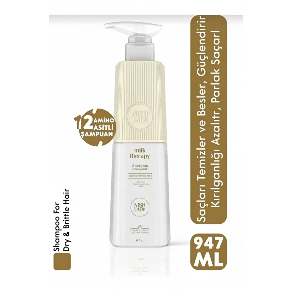 Kuru ve yıpranmış saçlara özel geliştirilen Nish Lady Milk Therapy Şampuan, süt proteini ile zenginleştirilmiş formülü sayesinde saç tellerini kökten uca besler, nemlendirir ve onarır. Düzenli kullanımda saçlarınız daha yumuşak, parlak ve sağlıklı bir görünüme kavuşur. Hem profesyonel kuaför salonlarında hem de ev kullanımında güvenle tercih edilebilir.
