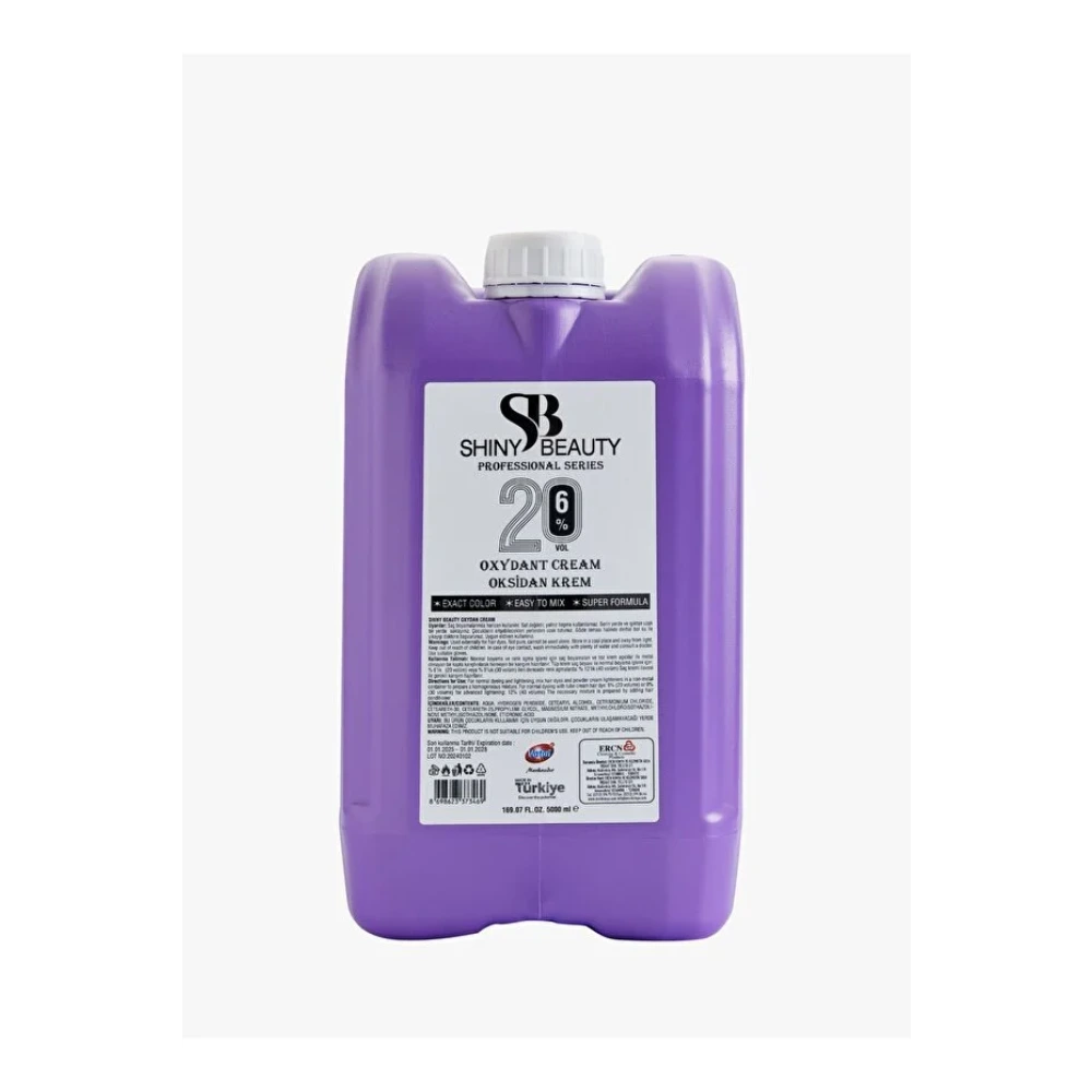 Shiny Beauty Oksidan Krem 20 Volüm (6%) – 5 Kg, profesyonel kuaför kullanımı için geliştirilmiş, saç boyama ve kontrollü açma işlemlerinde kullanılan oksidan kremdir.